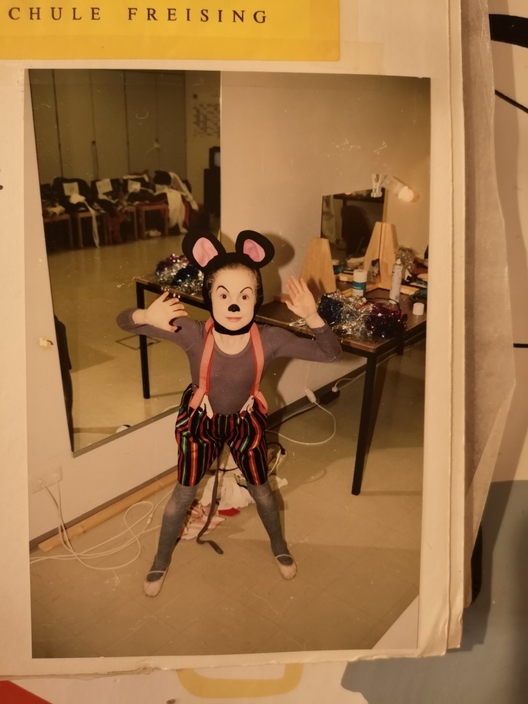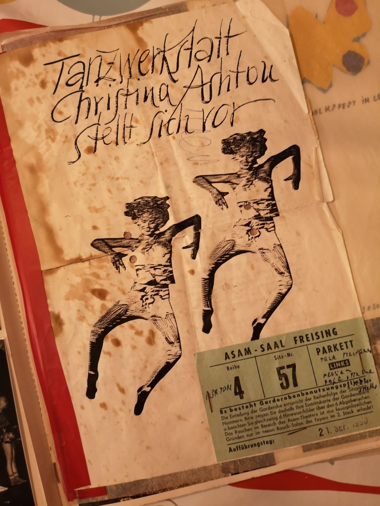 PS: Vor 30 Jahren habe ich bei Christina Ashton in Freising mit dem Tanzen begonnen und bin stets zurück gekehrt. Der Blick von der Stange aus in den Innenhof der Altstadtgalerie, der Blick vom Boden aus auf die pink umrandeten Lichtkästen, die Ballettmusik und diese wundervolle strenge, fantasievolle und lustige Lehrerin lösen in mir ein Gefühl der Geborgenheit aus. Danke dafür!
